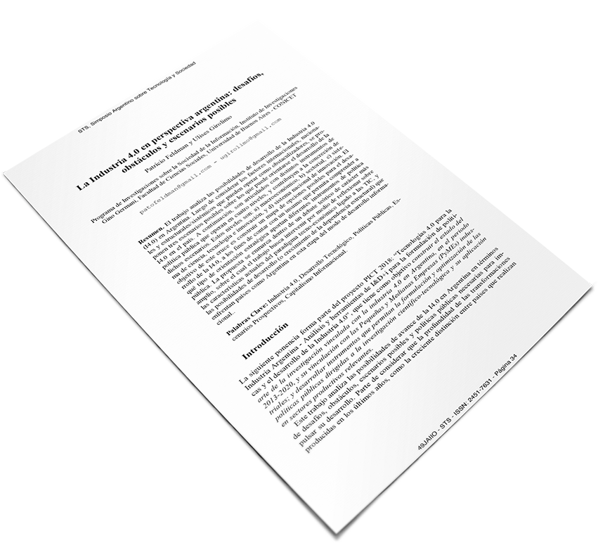 Bienes y servicios informacionales en la provincia de Santa Fe y su vinculación con los entramados socio-productivos locales: elementos para la construcción de una agenda de desarrollo con base en las tecnologías 4.0