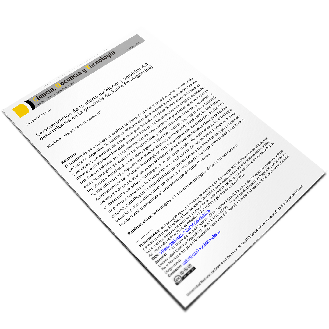 Caracterización de la oferta de bienes y servicios 4.0 desarrollados en la provincia de Santa Fe (Argentina). Ciencia, Docencia Y Tecnología, 36(73 (ene-abr).
