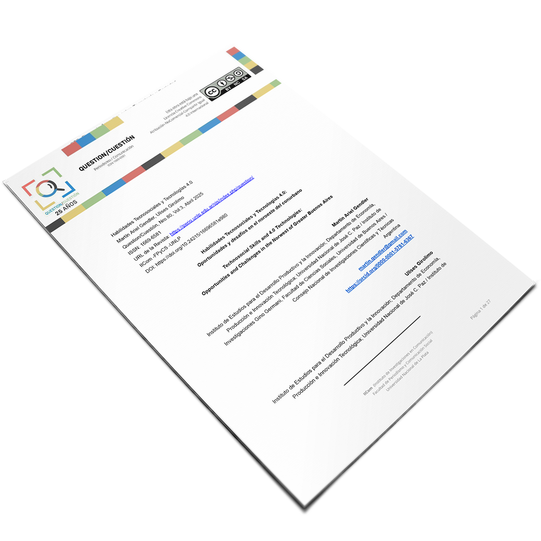 Habilidades Tecnosociales y Tecnologías 4.0. Oportunidades y desafíos en el noroeste del conurbano bonaerense. Revista Question/Cuestión, 3(80), 1-27.