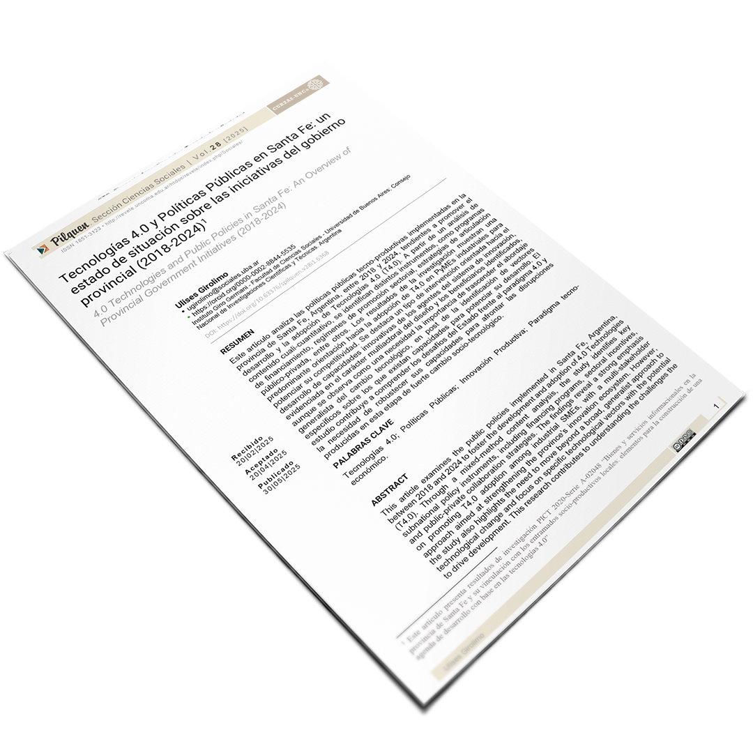 Tecnologías 4.0 y Políticas Públicas en Santa Fe: un estado de situación sobre las iniciativas del gobierno provincial (2018-2024). Revista Pilquen. Sección Ciencias Sociales, 1–28.